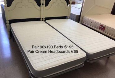 Pair of single beds with mattresses. Headboard sold separately.
