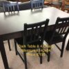 Solid table and chairs. There is a mark on the table top, which can be seen in the photo.